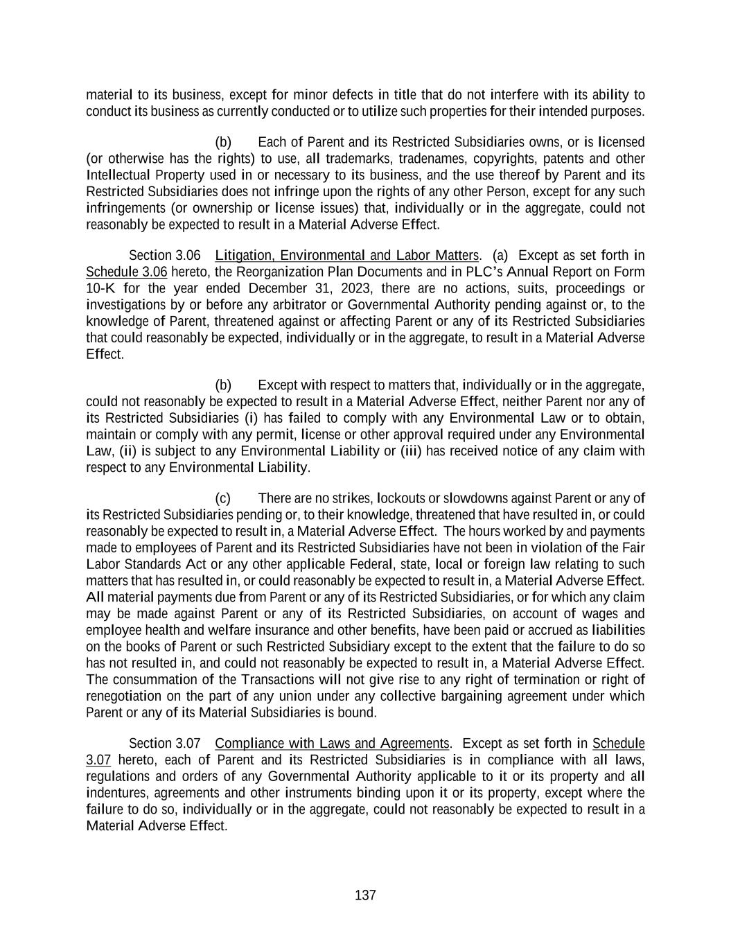 (a)The Company represents and warrants that (i) it is fully authorized by action of the Board (and of any other person or body whose action is required) to enter into this Agreement and to perform its obligations under it, (ii) the execution, delivery and performance of this Agreement by it does not violate any applicable law, regulation, order, judgment or decree or any agreement, arrangement, plan or corporate governance document (x) to which it is a party or (y) by which it is bound, and (iii) upon the execution and delivery of this Agreement by the parties, this Agreement shall be its valid and binding obligation, enforceable against it in accordance with its terms, except to the extent that enforceability may be limited by applicable bankruptcy, insolvency or similar laws affecting the enforcement of creditors’ rights generally.