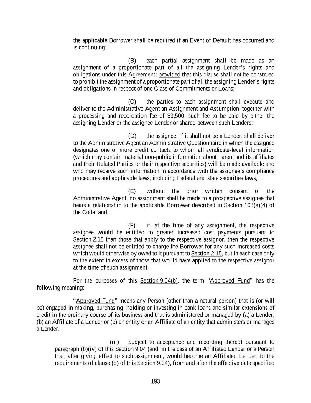 (iii)Notwithstanding the foregoing, it shall not be a violation of this Section 11(b), for Executive to provide services to (or engage in activities involving): (A) a subsidiary, division or affiliate of a Competing Business where such subsidiary, division or affiliate is not engaged in a Competing Business and Executive does not provide services to, or have any responsibilities regarding, the Competing Business; (B) any entity that is, or is a general partner in, or manages or participates in managing, a private or public fund (including a hedge fund) or other investment vehicle, which is engaged in venture capital investments, leveraged buy-outs, investments in public or private companies, other forms of private or alternative equity transactions, or in public equity transactions, and that might make an investment which Executive could not make directly, provided that in connection therewith, Executive does not provide services to, engage in activities involved with, or have any responsibilities regarding a Competing Business; and (C) an affiliate of a Competing Business if Executive does not provide services, directly or indirectly, to such Competing Business and the basis of the affiliation is solely due to common ownership by a private equity or similar investment fund; provided, that, in each case, Executive shall remain bound by all other post-employment obligations under this Agreement including Executive’s obligations under Sections 10, 11(a), 11(c) and 11(d) herein; provided, further, that Executive’s provision of services to (or engagement in activities involving) any entity described in clauses (A) or (B) of this Section 11(b)(iii) shall be subject to the prior approval of the Board.